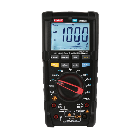 UT195Ex是一款可用于 IIC(氣體) 2區(qū)以及IIIC(粉塵) 22區(qū)的本質(zhì)安全型手持式工業(yè)數(shù)字萬用表。它不僅具備傳統(tǒng)萬用表測量交直流電壓、電流、電阻、二極管、電路通斷、電容、頻率、占空比等功能,同時還具備防水、防塵、耐摔等特點(diǎn)。無論您是在石油環(huán)境、化工環(huán)境、制藥環(huán)境、航空環(huán)境亦或是強(qiáng)電場環(huán)境中工作,您都可通過這款耐用的本安型萬用表獲得所需的全部測試和故障排除功能。它符合CAT III 1000V/CAT IV600V安全等級,并獲得了國家Ex ic IIC T4 Gc、Ex ic IIIC T130℃ Dc防爆認(rèn)證。 可適用于、石油環(huán)境、化工環(huán)境、制藥環(huán)境、航空環(huán)境亦或是強(qiáng)電場環(huán)境中檢測、維護(hù)和維修 電路電力設(shè)備。