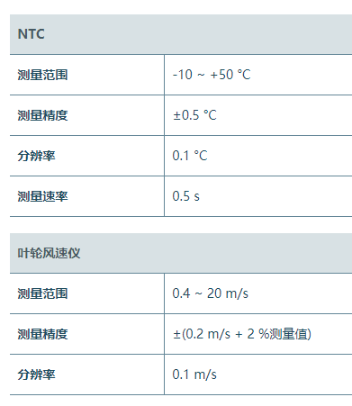 該便攜式風速測量儀,配有直徑為30mm的葉輪。因而其可用于完整測量通風格柵(出風口)的風速。該風速儀適用于室外風速和空氣溫度測量;testo 410-1葉輪風速儀亦可計算蒲福風級和風冷溫度。