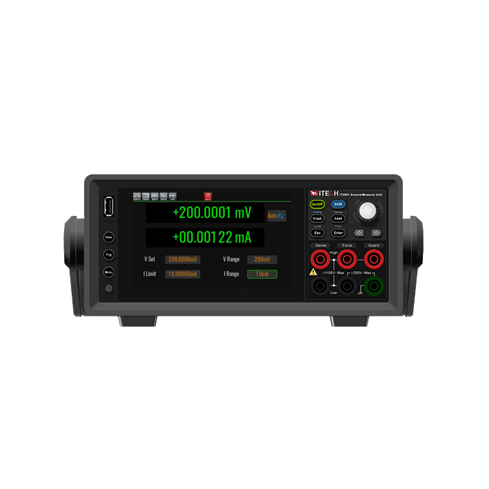 IT2800系列是外觀緊湊、經(jīng)濟(jì)高效的臺(tái)式源測(cè)量單元,簡(jiǎn)稱源表或SMU。它集6種設(shè)備功能于一體,綜合了四象限電壓源,電流源,6.5位數(shù)字萬(wàn)用表、脈沖發(fā)生器、電池模擬器以及電子負(fù)載功能,是半導(dǎo)體功率器件IV特性測(cè)試的理想選擇。全系列覆蓋了10fA到10A的電流范圍以及100nV到1000V的電壓范圍。除了直流工作模式之外,IT2800系列SMU還能夠進(jìn)行脈沖測(cè)量,以防止器件自身發(fā)熱導(dǎo)致測(cè)量結(jié)果出現(xiàn)誤差。5寸觸摸顯示屏,使源表具有出色的圖形用戶界面以及各種顯示模式,幫助工程師顯著提高測(cè)試效率。廣泛應(yīng)用于分立半導(dǎo)體器件、功率芯片、無(wú)源器件、光電器件、微功耗量測(cè)以及材料研究等領(lǐng)域。