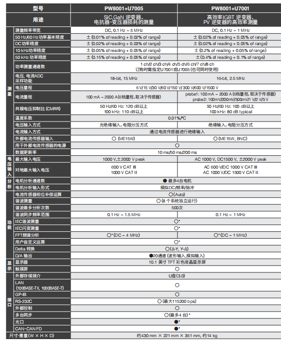PW8001 不僅可測量 50 Hz/60 Hz,還具有 DC 和 50 kHz 等頻率帶寬的出色測量精度,可用于正確評估功率轉換效率。