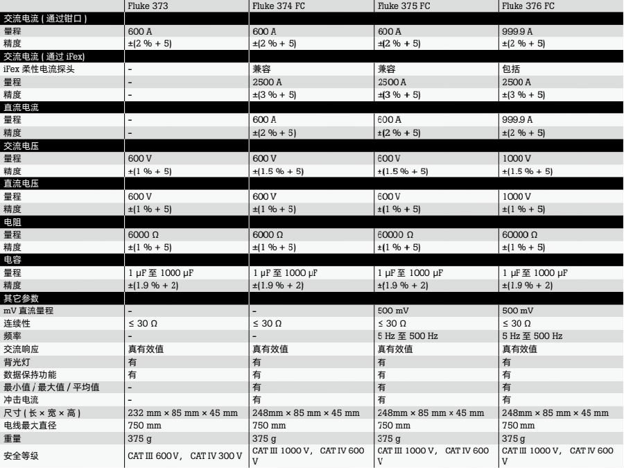 Fluke 376FC 真均方根交流/直流鉗形表包括: