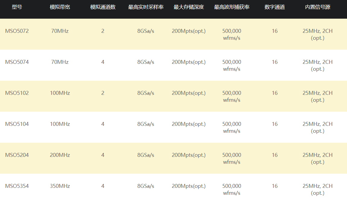 ●模擬通道帶寬:350 MHz、200 MHz、100 MHz和70 MHz,支持帶寬升級選件