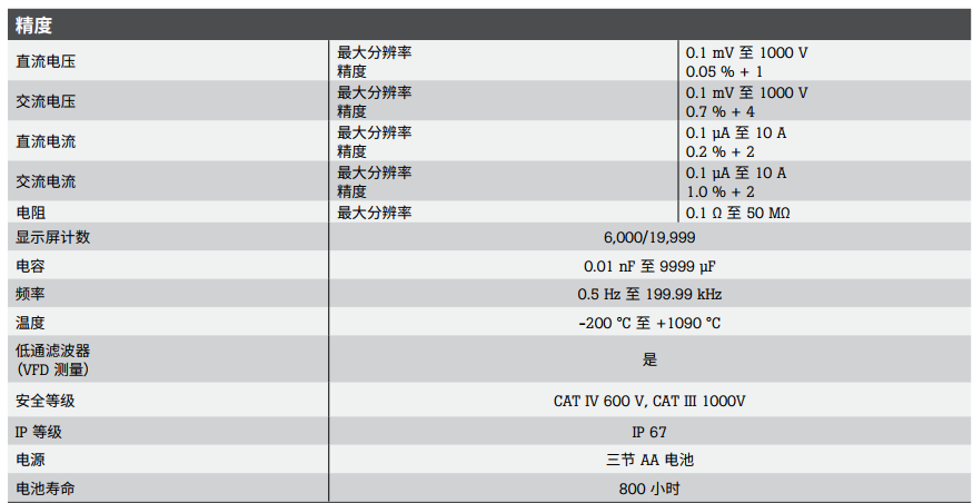 ●提供獨特功能以精確測量變頻電機驅(qū)動設(shè)備 (VFD) 及其他電氣信噪設(shè)備上的電壓和頻率