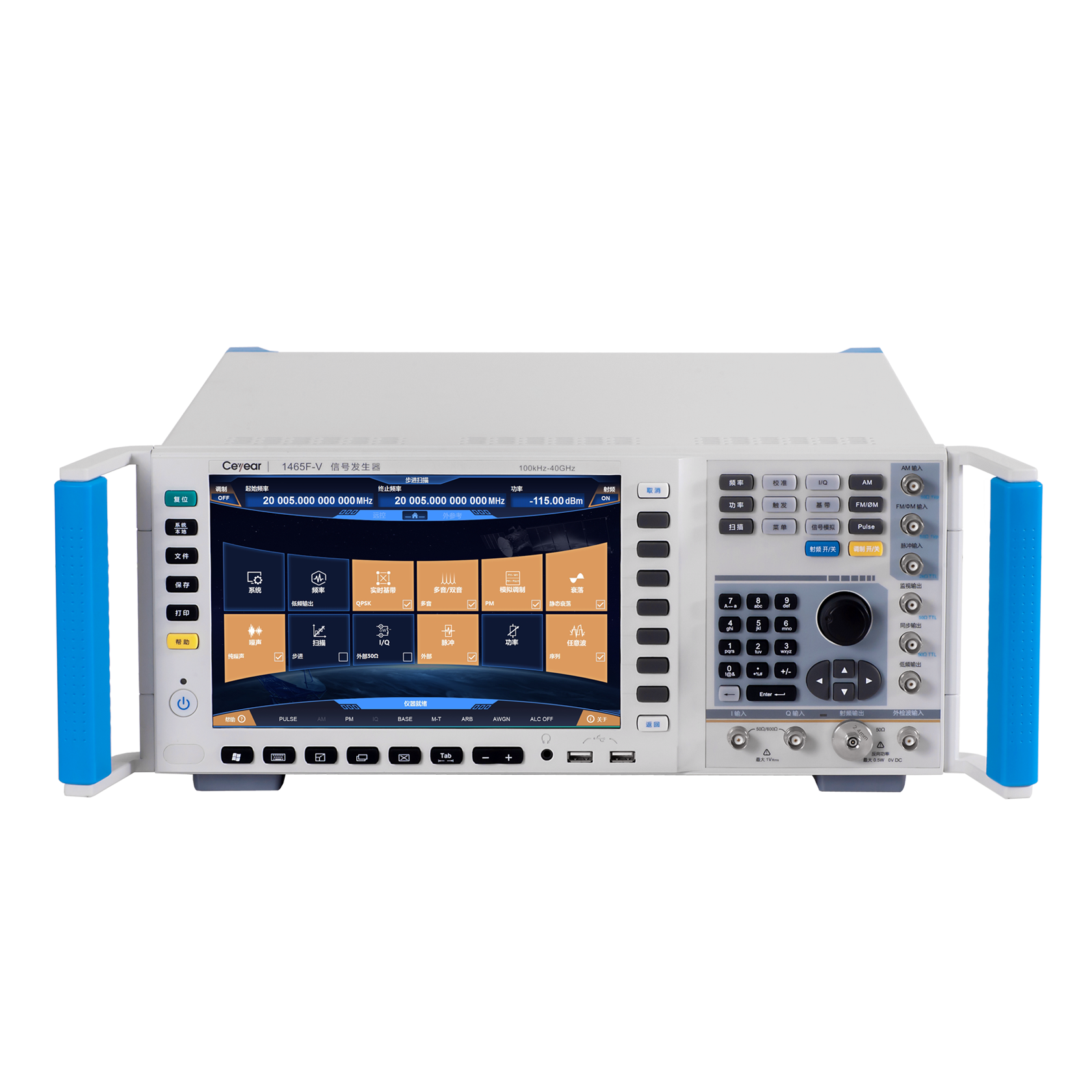 1465系列信號發(fā)生器頻率范圍覆蓋100kHz~67GHz,具有卓越的頻譜純度和輸出功率指標(biāo),單邊帶相位噪聲10GHz載波@10kHz頻偏-126dBc/Hz,最大輸出功率可達(dá)1W@20GHz,輸出功率動態(tài)范圍大于150dB,可滿足對測試信號的高端需求;具有高精度模擬掃描功能、性能優(yōu)異的模擬調(diào)制和脈沖調(diào)制功能,內(nèi)部調(diào)制信號發(fā)生器頻率高達(dá)10MHz,信號波形多樣,脈沖調(diào)制最小脈寬20ns并能產(chǎn)生靈活的脈沖串,能夠滿足對模擬調(diào)制和脈沖調(diào)制的各種測試需求;具有10.1吋大顯示屏、1280×800像素高分辨率,并支持按鍵、鼠標(biāo)、觸摸屏等多種操作方式,提升操作體驗的同時可以提高測試效率。1465無論是連續(xù)波還是調(diào)制信號,信號質(zhì)量優(yōu)異,既是理想的本振源和時鐘源,也是高性能的模擬仿真信號源,主要用于雷達(dá)性能綜合評估、高性能接收機(jī)測試和元器件參數(shù)測試等方面,適用于航空、航天、雷達(dá)、通信以及導(dǎo)航設(shè)備等眾多領(lǐng)域。