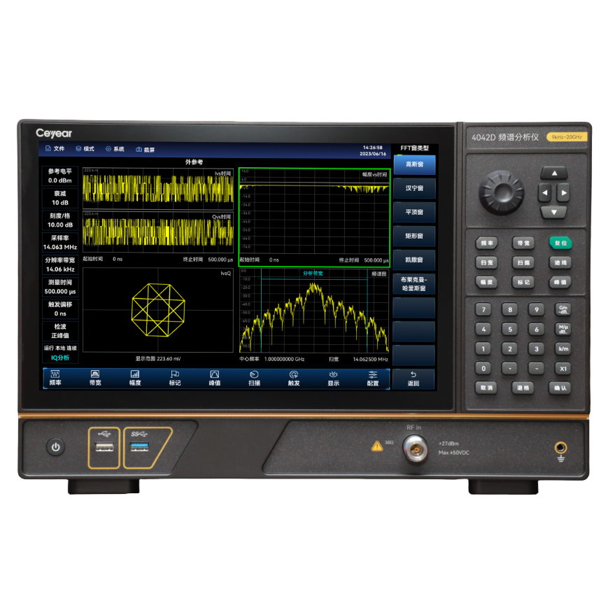 Ceyear 4042系列頻譜分析儀是電科思儀新推出的基礎(chǔ)型頻譜分析儀,頻率測量范圍覆蓋9kHz~20GHz。4042系列頻譜分析儀采用便攜式結(jié)構(gòu),重量低于6.5kg,具有工作頻段寬、性能指標(biāo)高、掃描速度快、測試功能多、便攜易操作等多重優(yōu)點(diǎn)。
